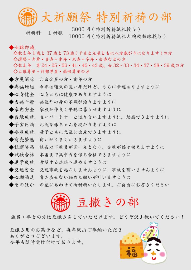 年男・年女の方、御祈祷を受けて豆まきに参加しましょう。